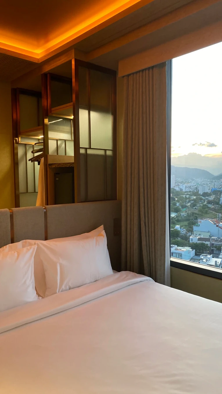 Отель расположен в г. Нячанг, всего в 36 км от аэропорта Камрань, что составляет около 40-50 минут езды 🛬.