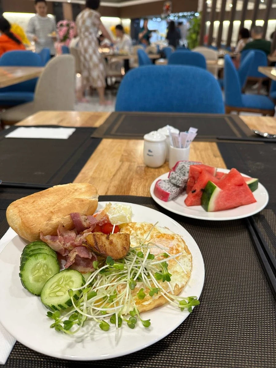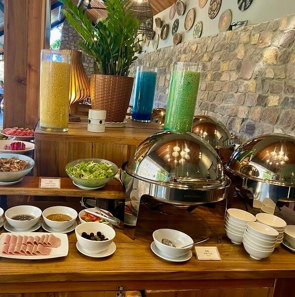 Отель Vinpearl Resort 5* — я бы сказала, что он идеальный! ✨ Питание — превосходное, особенно выделю: широкий выбор морепродуктов и фруктовую линейку 🍤🍍. Ассортимент мясных блюд — огромный!