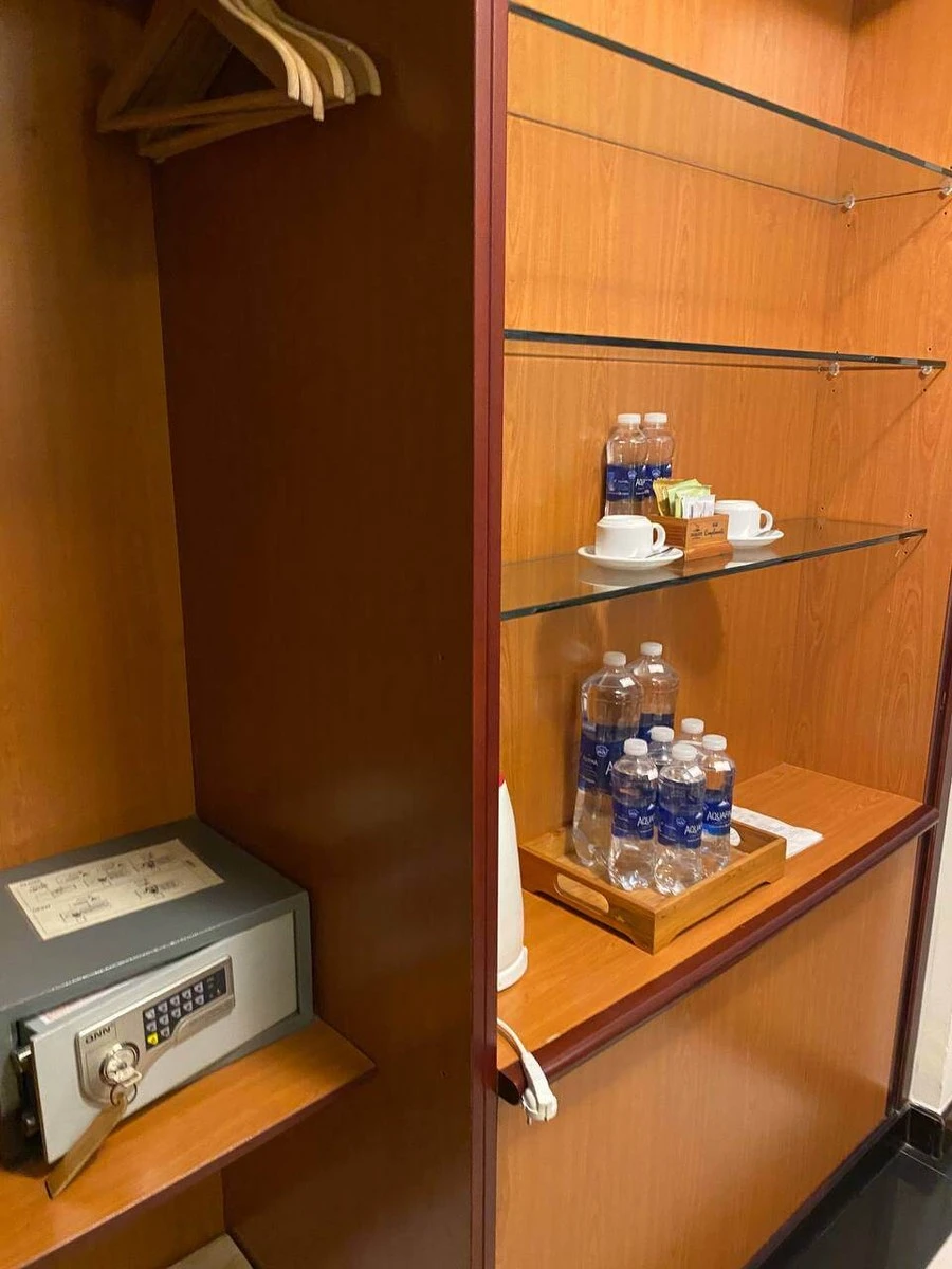 Отель не новый, но номера чистые, все работает. В них есть халаты, тапочки, чайник, фен, сейф и кондиционер — все необходимое для комфортного отдыха 🛏️.
