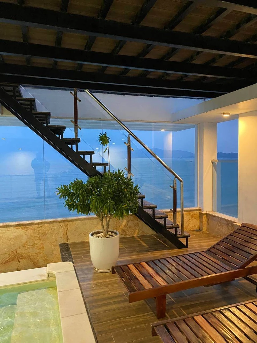 Этот отель в Нячанге (Вьетнам) находится в северной части города, где потише, чем в центре. 🚶♂️ Добраться до центра города легко на электробусе или такси, стоимость поездки на такси — 200-300 рублей. 🚖Отель расположен на первой линии, но около отеля нет оборудованного пляжа; лучше пройти немного вправо — там прекрасный городской пляж. 🏖️