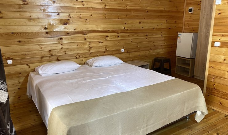 - Коттедж 2-местный стандартный (п. лесной): 20 кв. м. Кровать двуспальная.