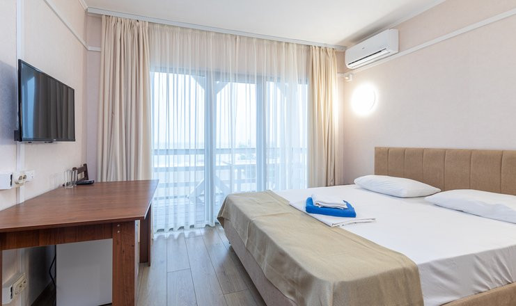 - Стандартный 2-местный (с балконом, морская сторона, корпус 1,2): 16 кв. м. Кровати односпальные /одна двуспальная кровать.