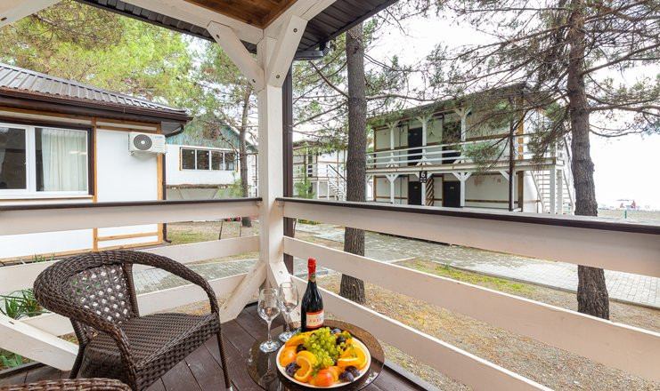 - Коттедж 2-местный стандартный (п. морской): 20 кв. м. Кровати односпальные /одна двуспальная кровать.