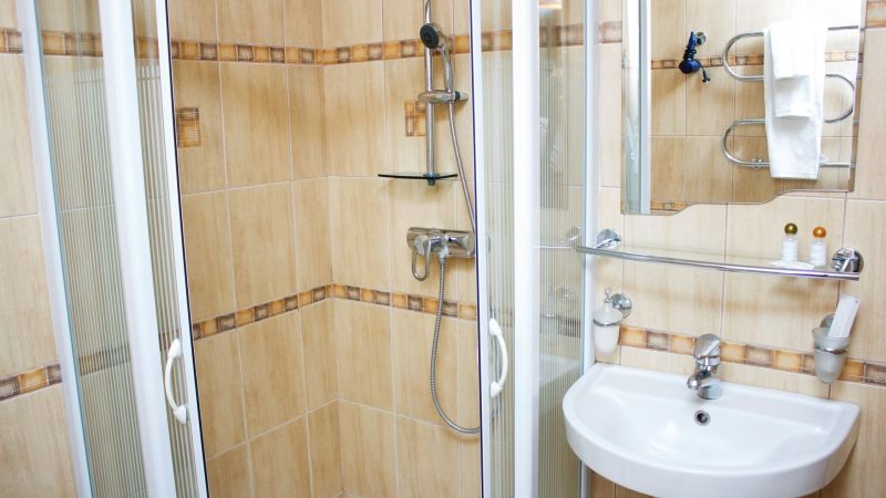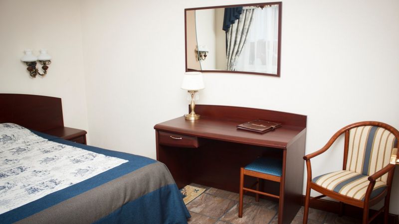 - Стандарт Однокомнатный номер: односпальная кровать, телевизор, холодильник, санузел с душевой кабиной. Площадь номера — 14 кв. м.