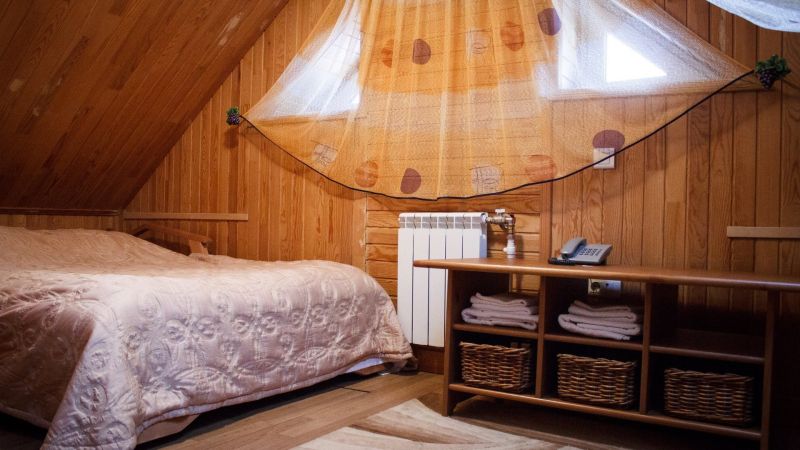 - Эконом Однокомнатный номер: раскладной диван, кресло, телевизор, холодильник, санузел с душевой кабиной. Площадь номера — 17 кв. м.