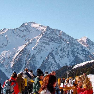 Многие европейцы спустившись со склона сразу с лыжами идут в бары и шумно веселятся. Хорошо, что трасса заканчивается в центре города, прямо у баров.